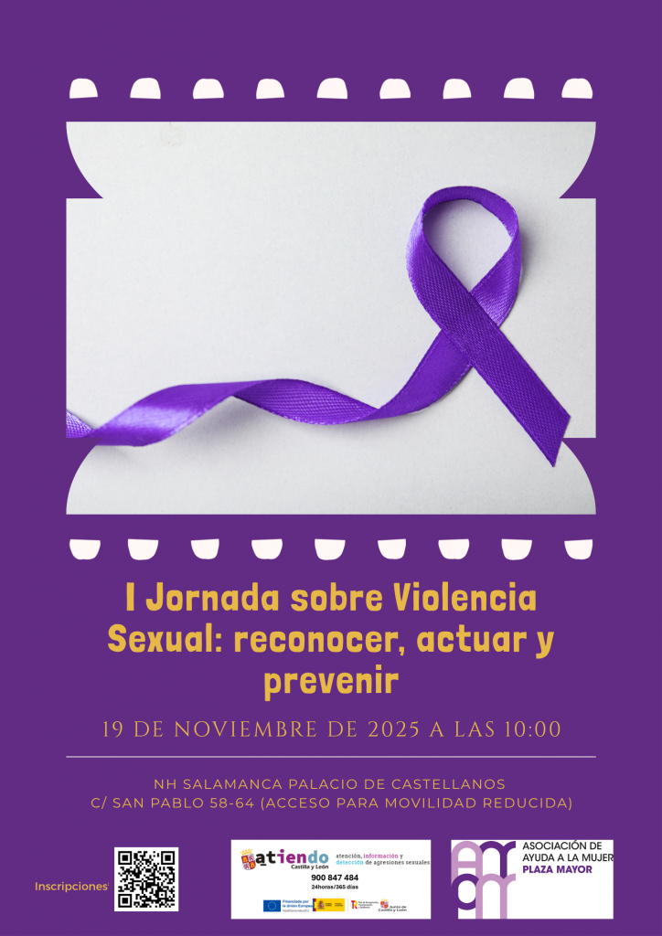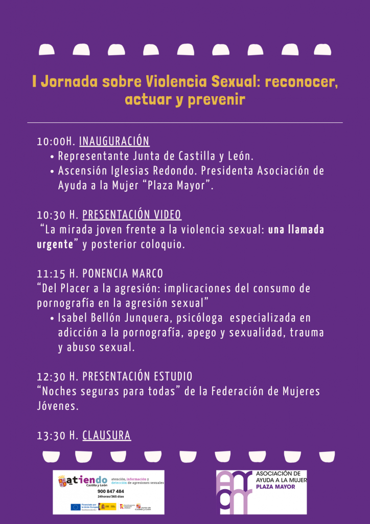 La Asociación de Ayuda a la Mujer «Plaza Mayor», entidad que gestiona el Centro de Crisis para Víctimas de Agresiones Sexuales de Salamanca «Atiendo», organiza la I Jornada sobre Violencia Sexual: reconocer, actuar y prevenir.